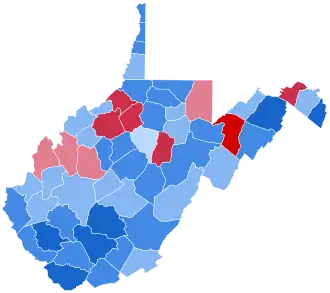 West Virginia was won by incumbent President Franklin D. Roosevelt (DNew York), running with Vice President John Nance Garner, with 60.56 percent of the popular vote, against Governor Alf Landon (RKansas), running with Frank Knox, with 39.20 percent of the popular vote.[3][4] Owing to powerful support for Roosevelt in labor-conscious coal-mining areas of the south and industrial areas of the Northern Panhandle, Roosevelt more than doubled his 1932 margin despite losing Jackson, Mason and Roane Counties.[5] In McDowell County, which had not voted Democratic since 1884,[6] FDR improved from 43.36 percent to 71.79 percent, and he made double-digit gains in adjacent Mingo, Logan, Wyoming, Raleigh and Fayette Counties.[7]