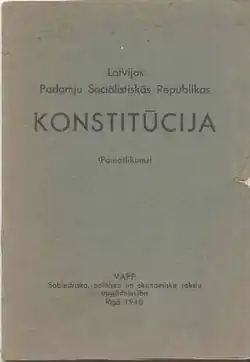 The 1940 Constitution of the Latvian Soviet Socialist Republic (Latvian: Latvijas Padomju Sociālistiskās Republikas Konstitūcija; Russian: Конституция Латвийской Советской Социалистической Республики, romanized: Konstitutsiya Latviyskoy Sovetskoy Sotsialisticheskoy Respubliki) was adopted by the 2nd session of the People's Saeima of Latvia on August 25, 1940.