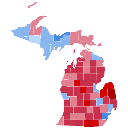 | Lapeer | 7,714 | 69.86% | 3,299 | 29.88% | 22 | 0.20% | 7 | 0.06% | 2 | 0.02% | 4,415 | 39.98% | 11,042 |