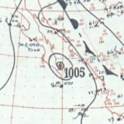![]() Surface weather analysis of the hurricane on September 10 | |
