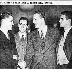 Junior left halfback Virgil Wagner gained 1,081 yards on 170 carries (6.5 yards per carry), scored 12 touchdowns, and completed 27 of 54 passes. A triple-threat man, Wagner also handled punting duties, averaging 40.5 yards per punt. He also returned 23 punts for 292 yards (12.7-yard average) and averaged 28.3 yards on kickoff returns.[4] Wagner received second-team honors on the Associated Press 1941 Little All-America college football team.[5] Wagner later played for the Montreal Alouettes from 1946 to 1954 and was inducted into the Canadian Football Hall of Fame in 1980.[6]