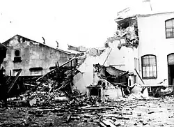 In Masterton many buildings were badly damaged by the first quake; the fire station, the Bank of New Zealand, several shops, and St Matthews Church (which was later blown up by the Army). The Waiohine River's road-bridge on State Highway 2 was badly sunken and was closed.[15] After the second quake, Masterton's WFCA building partly collapsed.[16][17]