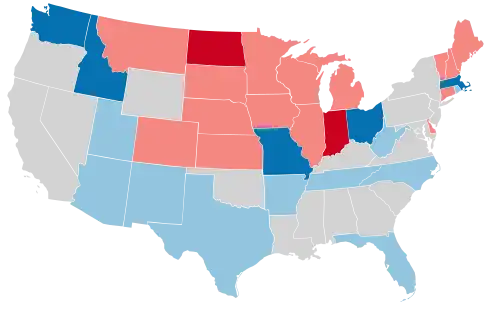2. ^ There was no net change in the regularly-scheduled elections, but Republicans picked up one seat in the special elections.