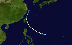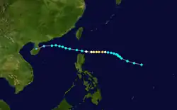 Gertrude formed on August 27 east of the Philippines. It moved west while reaching peak intensity as a Category 2 typhoon. It later weakened and re-strengthened to a Category 1 typhoon. After passing Luzon, Gertrude moved west-northwest and hit China as a tropical storm. It dissipated on September 4.