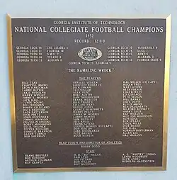 The 1952 Georgia Tech Yellow Jackets football team represented the Georgia Institute of Technology in the 1952 NCAA football season. Led by head coach Bobby Dodd, the Yellow Jackets went undefeated including a victory in the 1953 Sugar Bowl.[1] Coach Bobby Dodd and the Yellow Jackets were awarded a split National Championship, winning the 1952 INS National Championship poll, sharing the Championship with the Michigan State Spartans.[2] The team was selected national champion by Berryman, Billingsley, INS, Poling, and Sagarin (ELO-Chess).[3]