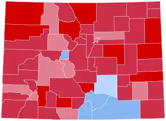 | Las Animas | 4,467 | 40.74% | 6,446 | 58.79% | 51 | 0.47% | -1,979 | -18.05% | 10,964 |