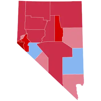 Nevada was won by Columbia University President Dwight D. Eisenhower (RNew York), running with Senator Richard Nixon, with 61.45% of the popular vote, against Adlai Stevenson (DIllinois), running with Senator John Sparkman, with 38.55% of the popular vote. Eisenhower's vote share was the highest achieved in Nevada by any Republican presidential candidate to that point, although Richard Nixon in 1972 and Ronald Reagan in 1980 and 1984 would eventually exceed Eisenhower's 61.45% vote share. This was the last time that Clark County, home to Las Vegas, did not cast the most votes of any county in a presidential election in Nevada.