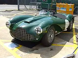 Jaguar was able to get an unofficial practice in May on the full track in an unrelated event and Tony Rolt took the prototype D-type round fully 5 seconds faster than Alberto Ascari's lap record from the previous year in the Indy-engined Ferrari.[9] In the official practice, all three works cars recorded identical times.[7] and they and the Ferraris were a step up from the rest of the field. Overall, the Jaguars had better handling, disc brakes and were faster (Moss was timed at 154.44 mph/278 km/h over the flying kilometre, giving a huge 20 km/h advantage), but the Ferrari had superior power and acceleration.[5][19] The supercharged Aston Martin, the Lagonda, and the Porsches were also impressively quick.[20]