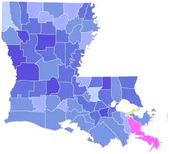 Earl Long won 62 of the state's 64 parishes; only Orleans Parish went to Morrison. The support of local political boss Leander Perez won Plaquemines Parish for Fred Preaus, who lost his own Union Parish. Long was intensely proud of his first-primary victory, exclaiming "Huey never done that!"