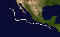 Fernanda formed on September 3 southwest of Guatemala where it moved west-northwest as a category 1 hurricane before dissipating on September 8 southwest of Mexico.[2]