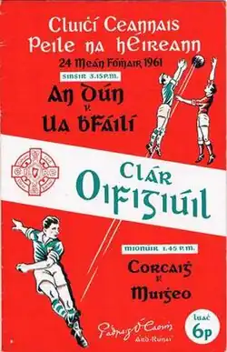 The 1961 All-Ireland Senior Football Championship final was the 74th All-Ireland Final and the deciding match of the 1961 All-Ireland Senior Football Championship, an inter-county Gaelic football tournament for the top teams in Ireland. A crowd of 90,556 (a record at the old Croke Park) watched the match between Down and Offaly.[1]