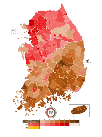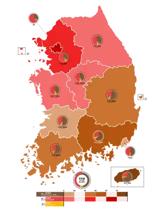 Jeonnam 765,712 (57.2%) 480,800 (35.9%) 51,714 (3.9%) 17,312 (1.3%) 22,604 (1.7%) 1,338,142