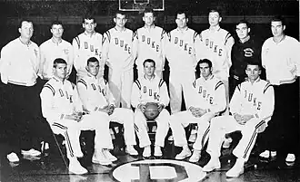 The 1964–65 Duke Blue Devils men's basketball team represented Duke University in the 1964–65 NCAA Division I men's basketball season. The head coach was Vic Bubas[2] and the team finished the season with an overall record of 20–5 and did not qualify for the NCAA tournament.[3]