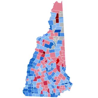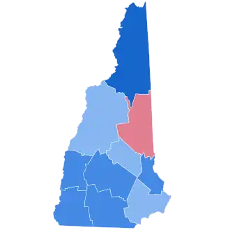 This would be the last occasion until 2008 that a Democratic presidential nominee would carry Belknap County, and the last until 1996 that the party's nominee would carry Rockingham County (although they would not get a majority there until 2020). New Hampshire as a whole, along with Cheshire, Grafton, Merrimack, and Sullivan Counties,[3] would not vote Democratic again until 1992.