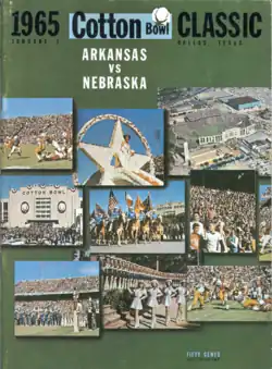 The 1965 Cotton Bowl Classic was the twenty-ninth edition of the college football bowl game, played on January 1, 1965 at the Cotton Bowl in Dallas, Texas. The game matched Southwest champion Arkansas against Big Eight champion Nebraska.