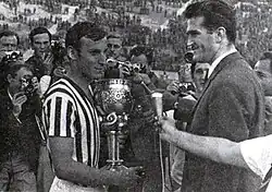 Captain of Red Star, Dragan Džajić, holding the 1968 Marshal Tito's Cup