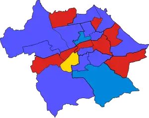 Party Seats Gains Losses Net gain/loss Seats % Votes % Votes +/−
