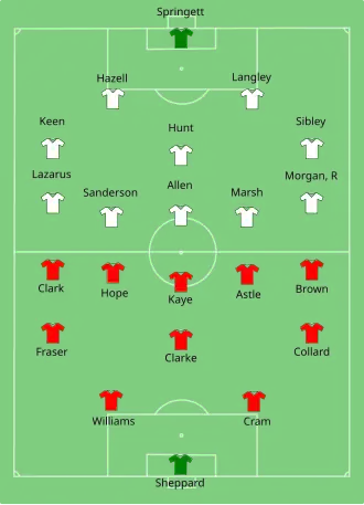 Albion's sole goalscoring opportunity of the second half came afterwards; Clark took the ball on a lengthy run before crossing it into the box, across an open goal with no Albion player there to tap the ball in and put the game beyond QPR's reach. Fifteen minutes from the end of the match QPR equalised, Marsh's shot with his right foot went in off the post. A corner followed for QPR who were now dominating Albion with their style of play. Allen crossed it in to Lazarus, but the Albion goalkeeper saved the shot with his legs. With eight minutes to go, one of Albion defenders mis-kicked the ball in their own penalty area. Hunt rushed in for the chance but Sheppard once again saved the game for Albion. The ball ran free to Mike Lazarus who tapped the ball into the back of an empty net to increase the scoreline to 3–2 in QPR's favour. A final attack from QPR came in the closing moments of the game as Lazarus took the ball past two defenders and into the box, his subsequent shot hit the outside of the post and went wide.[20]