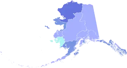 ![]() ![]() Gravel: 40–50% 50–60% 60–70% Rasmuson: 40–50% Gruening: 30–40% | |||||||||||||||||||||
