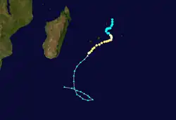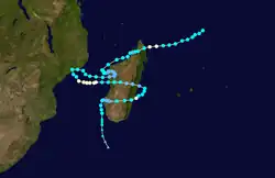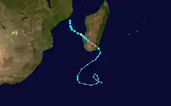 Cyclone Felicie was a slow moving cyclone that made a large number of landfalls in Madagascar, 4, in addition to a single landfall in Mozambique, which reportedly killed 30 people. The storm followed a very erratic track due to unusual steering patterns, and went through many cycles of strengthening and weakening as it slowly trudged to the south. Felicie reached Tropical Cyclone status three separate times, before finally becoming extratropical southwest of Madagascar.[1]