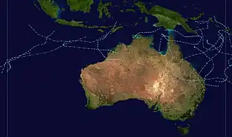Vicky, 24 February to 4 March 1972 crossed Western Australian coast at Cockatoo Island.