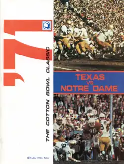 The 1971 Cotton Bowl Classic was the 35th edition of the college football bowl game, played at the Cotton Bowl in Dallas, Texas, on Friday, January 1.[3] A rematch from the previous year, the undefeated and top-ranked Texas Longhorns of the Southwest Conference were upset by the independent Notre Dame Fighting Irish, 24–11.[2][4][5]