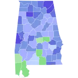 1. ^ a b c d e f In this county where Blount ran third behind Sparkman and LeFlore, margin given is Sparkman vote minus LeFlore vote and percentage margin Sparkman percentage minus LeFlore percentage.