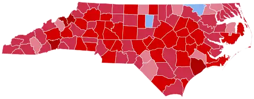 Amidst a nationwide landslide defeat especially felt in the South, McGovern won only two counties in North Carolina, neither of which have voted for a Republican presidential candidate since the Fourth Party System era: Orange County in the Research Triangle region, home of the University of North Carolina at Chapel Hill, and majority-Black Northampton County in the northeast of the state.[2] Even in these counties, where most Democratic candidates receive over sixty percent of the vote (and where Walter Mondale in 1984 would still win by double digits), McGovern won by less than five points.[3] Among white voters, 78% supported Nixon, while only 20% supported McGovern.