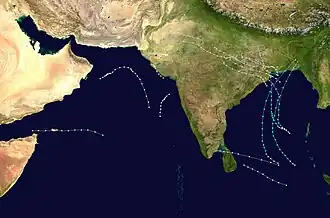 1. ^ "Frequently Asked Questions: What is the annual frequency of Cyclones over the Indian Seas? What is its intra-annual variation?". India Meteorological Department. 2012. Archived from the original on May 21, 2015. Retrieved June 8, 2012.