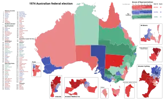 The 1974 Australian federal election was held in Australia on 18 May 1974. All 127 seats in the House of Representatives and all 60 seats in the Senate were up for election, due to a double dissolution. The incumbent Labor Party led by Prime Minister Gough Whitlam defeated the opposition Liberal–Country coalition led by Billy Snedden. This marked the first time that a Labor leader won two consecutive elections.