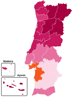 | Aveiro | 217,589 | 74.47% | 20,634 | 6.97% | 46,346 | 15.86% | 7,866 | 2.69% | 77.38% | |