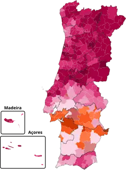 | Azores | 30,646 | 86.06% | 9,510 | 9.01% | 17,076 | 16.18% | 2,562 | 2.43% | 71.13% | |