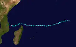 Formed on November 24 over the open Indian Ocean it moved in a mostly southwest direction, though it did curve a few times. It reached a peak intensity of 80 knots (92 mph; 150 km/h) and a pressure of 965 hectopascals (28.50 inHg) on November 29. Christelle made landfall on Madagascar on December 9 as a tropical depression.