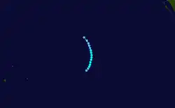 Cyclone Alice crossed 90º E on November 9, and 85º E a day later,[1] whereupon the MMS renamed the storm as Adelaide,[2] estimating winds of at least 120 km/h (75 mph). The JTWC estimated maximum sustained winds of 205 km/h (127 mph) at that time. Adelaide soon began a weakening trend, falling below tropical cyclone status on November 11. A day later, the storm turned to the west-northwest, steered by a ridge to the south. Adelaide weakened to a tropical depression on November 13, and was no longer classifiable a tropical cyclone by a day later.[3][4][5]