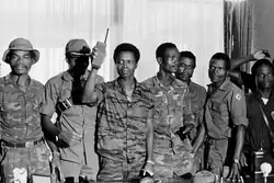 The 1980 Liberian coup d'état happened on April 12, 1980, when President William Tolbert of Liberia was overthrown and murdered in a violent coup.[1] The coup was staged by an indigenous Liberian faction of the Armed Forces of Liberia (AFL) under the command of Master Sergeant Samuel Doe. Following a period of transition, Doe ruled Liberia throughout the 1980s, until his murder in 1990 during the First Liberian Civil War.