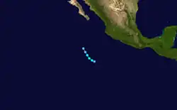 - ^ a b c d e f g h i j k l m n o p q r s t u Gunther, Emil B. (August 1981). "Eastern North Pacific Tropical Cyclones of 1980". Monthly Weather Review. 109 (8): 1701–1712. Bibcode:1981MWRv..109.1701G. doi:10.1175/1520-0493(1981)109<1701:ENPTCO>2.0.CO;2.