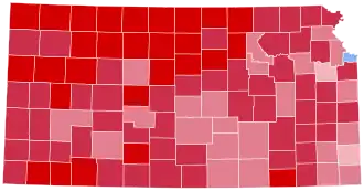 Kansas was won by former California Governor Ronald Reagan (R) by a margin of 24.56 points.[5] As had previously occurred in 1952, 1956 and 1968, the Republican nominee won every county except urbanised and substantially black and Hispanic Wyandotte, home to Kansas City, Kansas. Kansas has remained a reliably Republican state, and the last Democratic presidential candidate to carry the state was Lyndon Johnson in 1964.[6]