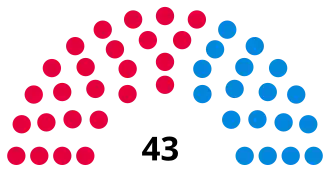 Last election 22 seats, 45.0% 21 seats, 51.3% 0 seats, 3.6%
