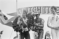 In the 500cc world championship, two Suzuki teams fought for the title with Marco Lucchinelli riding for Roberto Gallina's Italian Suzuki team and, Randy Mamola riding for the Heron Suzuki team backed by the UK Suzuki importer. Mamola started the season strongly with two victories and two second-place finishes to take the lead in the championship but then, Lucchinelli took command with four victories in the next five races to claim the world championship.[1] Mamola finished in second place for the second year in a row.[1]