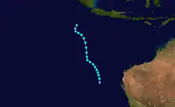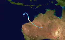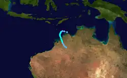Jane formed on January 2, 1983, near Indonesia. The storm moved southward where it reached Category 1 status on the same day. Jane did a small loop before continuing south-eastward. Jane reached Category 4 status before making landfall east of Port Hedland, Western Australia. Jane then dissipated after January 10.[1]