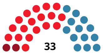 Last election 13 seats, 36.1% Did not contest 6 seats, 16.0%