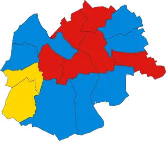 Last election 19 seats, 36.1% 15 seats, 31.4% 10 seats, 32.5%