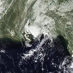 By September 6, the disturbance had emerged into the southwest Gulf of Mexico and consolidated into a smaller system which had enough organization to be classified as a tropical depression, the seventh of the season. The depression moved north-northwest into northeast Mexico on the afternoon of September 7, dissipating completely on September 8.[20]