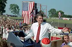 President Ronald Reagan gives remarks at the Polish Festival National Shrine of Our Lady of Czestochowa Doylestown, Pennsylvania on September 9, 1984.