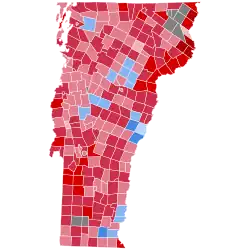 However, 1984 was the second consecutive election in which the state weighed in as more Democratic than the nation. Nevertheless, Reagan's 135,865 votes are the most received by a Republican presidential candidate in the state's history. As of the 2024 presidential election, this is the last time in which a Republican presidential nominee carried every county in Vermont, and the last when the GOP carried Addison, Chittenden, Franklin, Grand Isle and Windham Counties.[3]