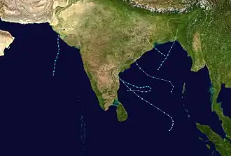 The 1985 North Indian Ocean cyclone season was part of the annual cycle of tropical cyclone formation. The season has no official bounds but cyclones tend to form between April and December. These dates conventionally delimit the period of each year when most tropical cyclones form in the northern Indian Ocean. There are two main seas in the North Indian Ocean—the Bay of Bengal to the east of the Indian subcontinent and the Arabian Sea to the west of India. The official Regional Specialized Meteorological Centre in this basin is the India Meteorological Department (IMD), while the Joint Typhoon Warning Center (JTWC) releases unofficial advisories. An average of five tropical cyclones form in the North Indian Ocean every season with peaks in May and November.[1] Cyclones occurring between the meridians 45°E and 100°E are included in the season by the IMD.[2]