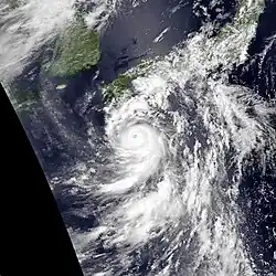 Typhoon Odessa was a tropical system that was active from August 23 through the 1st of September in the Western Pacific Ocean. Odessa was one of three tropical cyclones to exist in the area of Japan at around the same time. Odessa and Pat would pass very close together with Ruby impacting Tokyo. Odessa formed from an area of disturbed weather that persisted on the eastern end of a monsoon trough. The disturbance organized into a depression on August 23 and continued to develop and it was a tropical storm before the day was over. Odessa assumed a northerly track as it continued to strengthen, reaching typhoon intensity late on October 24. Odessa had become a compact storm with a very symmetrical structure. Its eye was very well defined, despite its peak intensity of 90 knots (100 mph; 170 km/h). Odessa was observed by STS 51 as they passed overhead. Odessa was one of the most powerful, circular tropical cyclone patterns ever seen by spacecraft crew. After moving westward and stalling southwest of Japan, it turned the northeast, travelling along the south-western coast of Japan, weakening along the way, before becoming extratropical on September 1.[12]