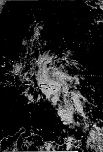 The most intense rainfall occurred on October 6, and on that day two stations recorded 24-hour precipitation totals exceeding 23 in (580 mm). These totals broke the 24-hour rainfall records set during the 1899 San Ciriaco hurricane,[1] and amounted to nearly half of the annual precipitation totals.[5] The town of Peñuelas reported very high rainfall totals in a short amount of time, including 2.75 in (70 mm) in one hour and 5.5 in (140 mm) in two hours.[6] The highest rainfall total in Puerto Rico was 31.67 in (804 mm) in Toro Negro State Forest. Rainfall spread across the island, and the southern half of Puerto Rico experienced totals of over 10 in (250 mm). Rainfall totals over 7 in (180 mm) spread across the United States Virgin Islands.[7] The tropical wave later spawned a low-pressure area north of Hispaniola that became Tropical Storm Isabel on October 7,[3] a day before the rains subsided in Puerto Rico.[7] The storm ultimately struck Florida before dissipating on October 15.[3]
