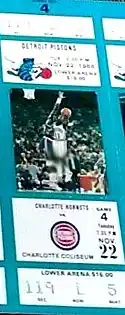 A ticket for a November 1988 game between the Pistons and the Charlotte Hornets.