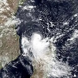 During the season, the Météo-France office (MFR) on Réunion island issued warnings in tropical cyclones within the basin. Using satellite imagery from National Oceanic and Atmospheric Administration, the agency estimated intensity through the Dvorak technique, and warned on tropical cyclones in the region from the coast of Africa to 90° E, south of the equator.[1] The Joint Typhoon Warning Center (JTWC), which is a joint United States Navy – United States Air Force task force, also issued tropical cyclone warnings for the southwestern Indian Ocean.[2] The season's nine named storms and five tropical cyclones – a storm attaining maximum sustained winds of at least 120 km/h (75 mph) – is the same as the long term average for the basin.[3]